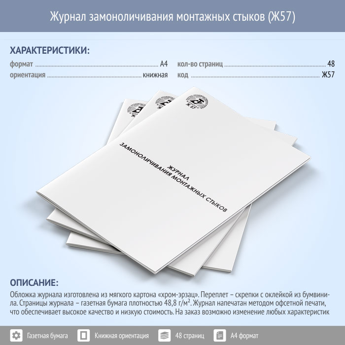 Журнал замоноличивания монтажных стыков (48 стр., Ж57) в Омске купить