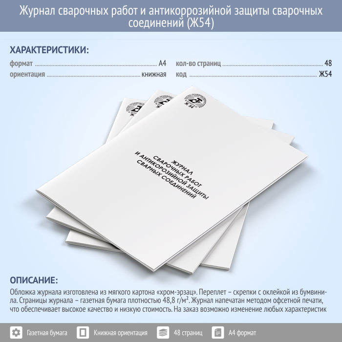 Журнал сварочных работ и антикоррозийной защиты сварочных соединений (48 стр., Ж54) в Омске купить