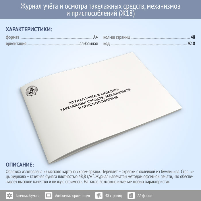 Журнал учета и осмотра такелажных средств, механизмов и приспособлений (48 стр., Ж18) в Омске купить