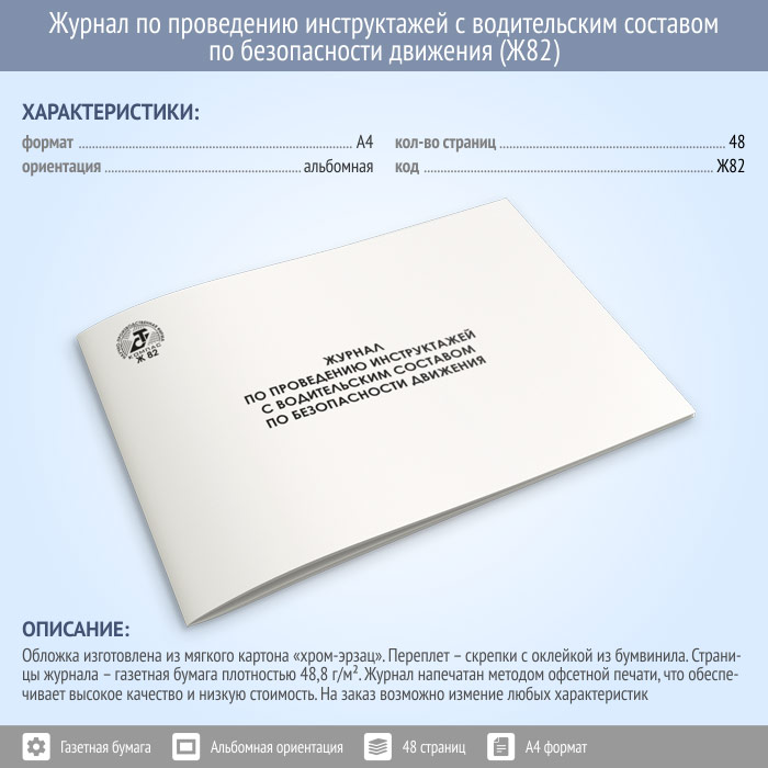 Журнал по проведению инструктажей с водительским составом по безопасности движения (48 стр., Ж82) в Омске купить