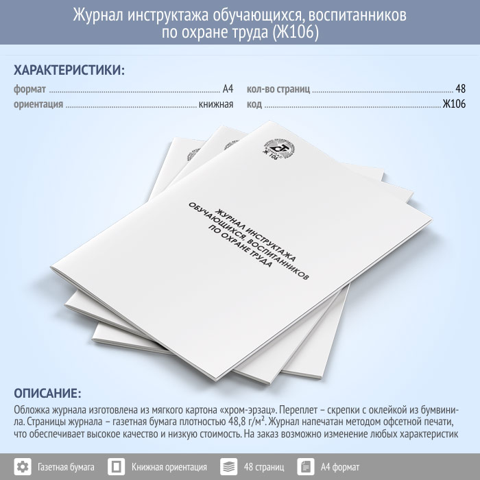 Журнал инструктажа обучающихся, воспитанников по охране труда (48 стр., Ж106) в Омске купить
