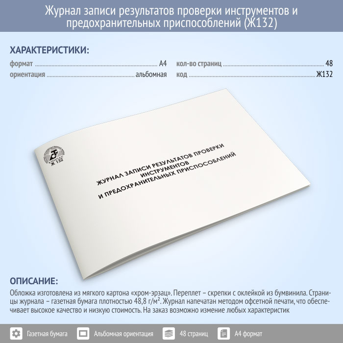 Журнал записи результатов проверки инструментов и предохранительных приспособлений (48 стр., Ж132) в Омске купить