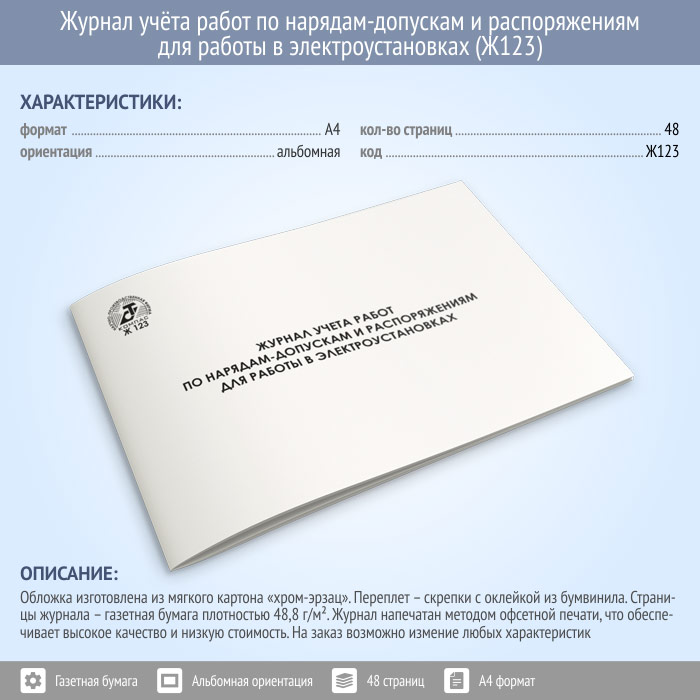 Журнал учета работ по нарядам-допускам и распоряжениям для работы в электроустановках (48 стр., Ж123) в Омске купить