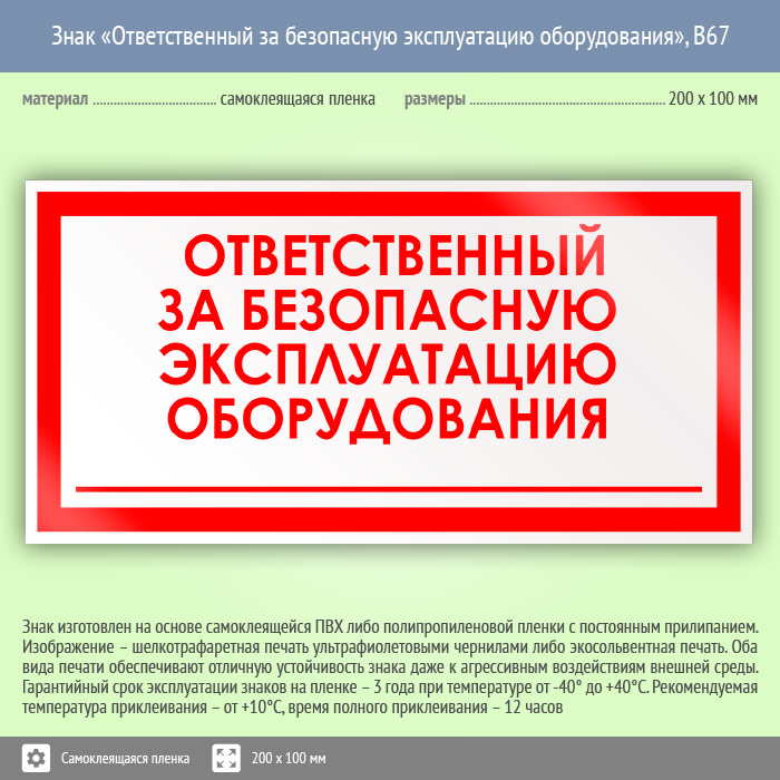 Знак B67 Ответственный за безопасную эксплуатацию оборудования