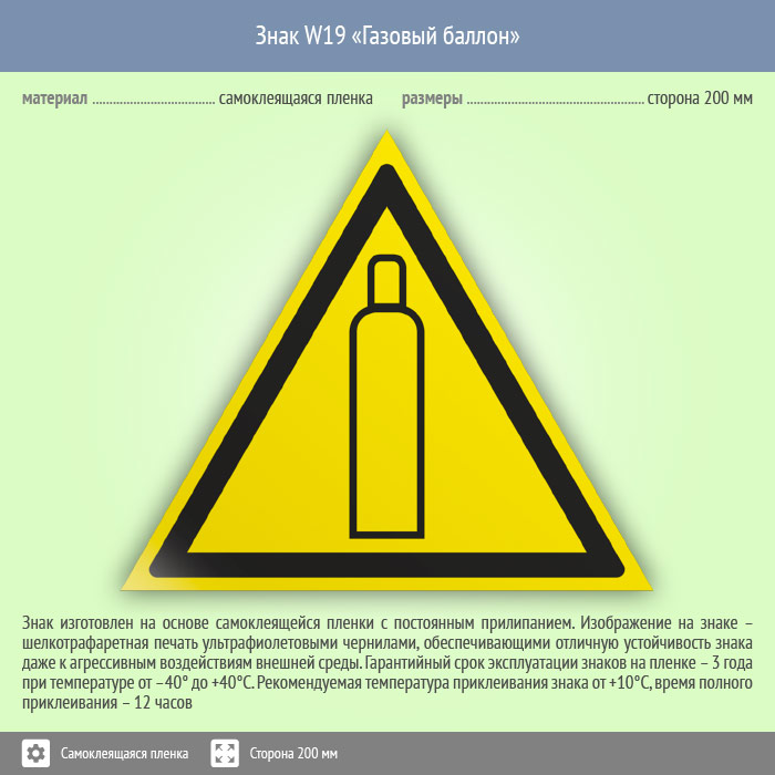 Знак W19 «Газовый баллон» (пленка, сторона 200 мм)