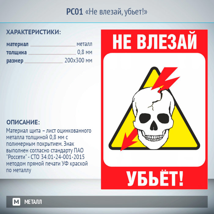 Знак «Не влезай, убьет!», РС01 (металл, 200х300 мм) в Омске купить