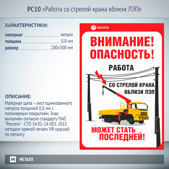 Знак «Работа со стрелой крана вблизи ЛЭП», РС10 (металл, 200х300 мм) в Омске купить