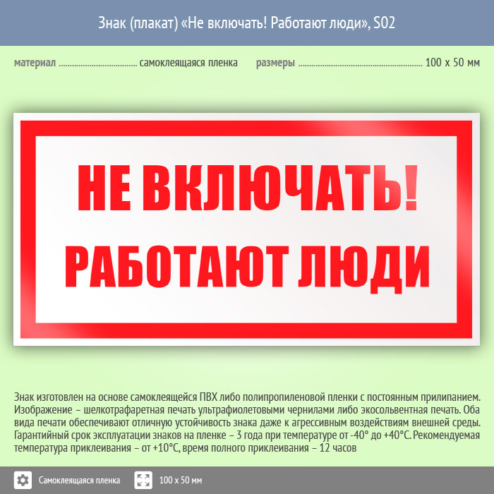 Знак (плакат) «Не включать! Работают люди», S02 (пленка, 100х50 мм) в Омске купить