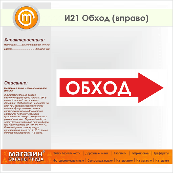 Знак «Обход (вправо)», И21 (пленка, 600х200 мм) в Омске купить