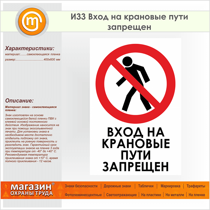 Знак «Вход на крановые пути запрещен», И33 (пленка, 400х600 мм) в Омске купить