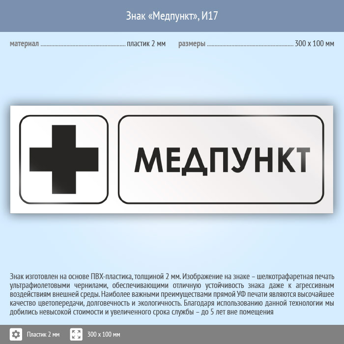 Знак «Медпункт», И17 (пластик, 300х100 мм) в Омске купить