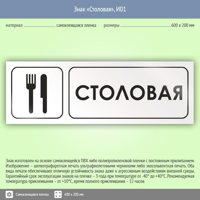 Знак «Столовая», И01 (пленка, 600х200 мм) в Омске купить