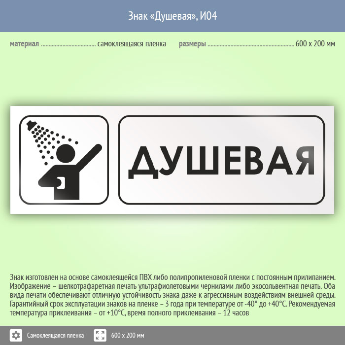 Знак «Душевая», И04 (пленка, 600х200 мм) в Омске купить