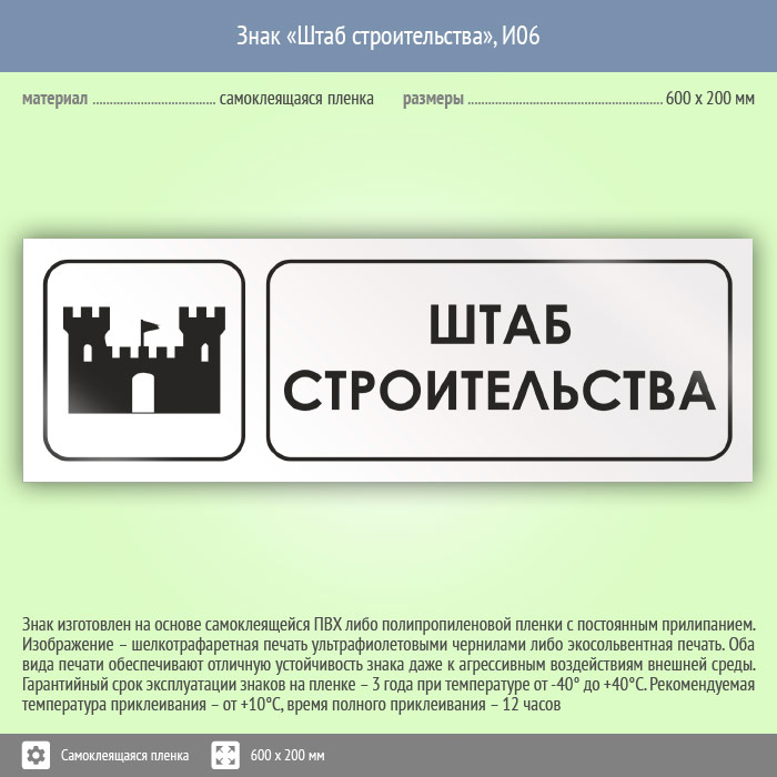 Знак «Штаб строительства», И06 (пленка, 600х200 мм) в Омске купить