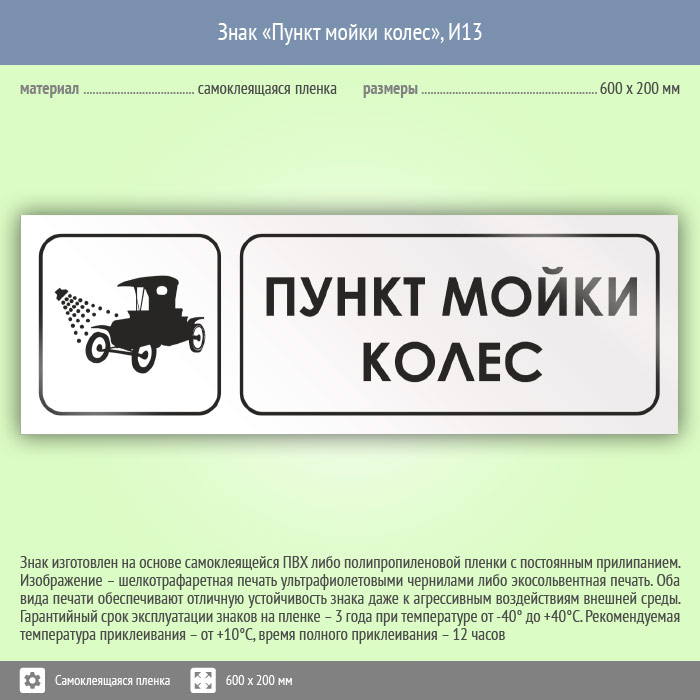 Знак «Пункт мойки колес», И13 (пленка, 600х200 мм) в Омске купить