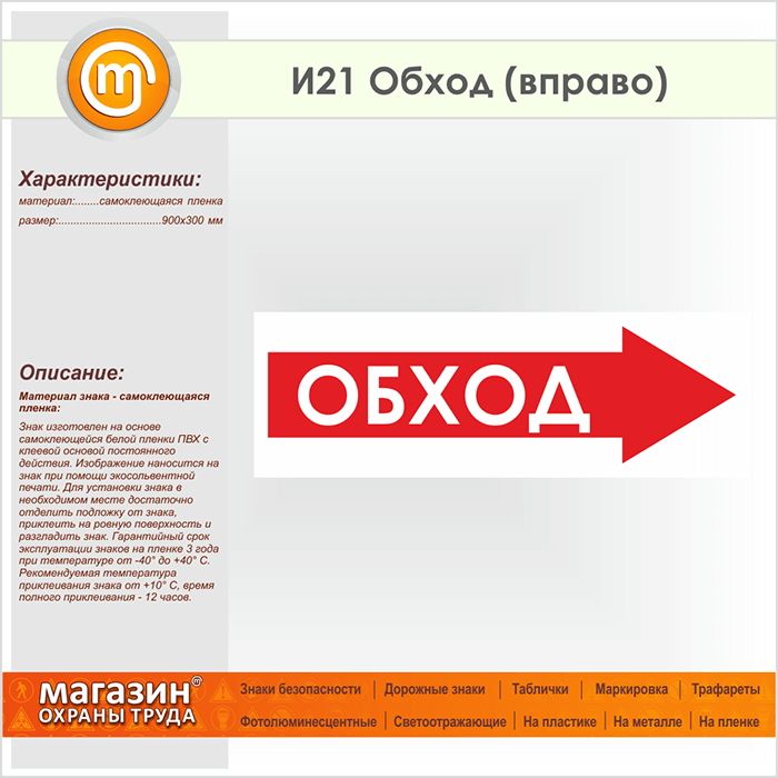 Знак «Обход (вправо)», И21 (пленка, 900х300 мм) в Омске купить