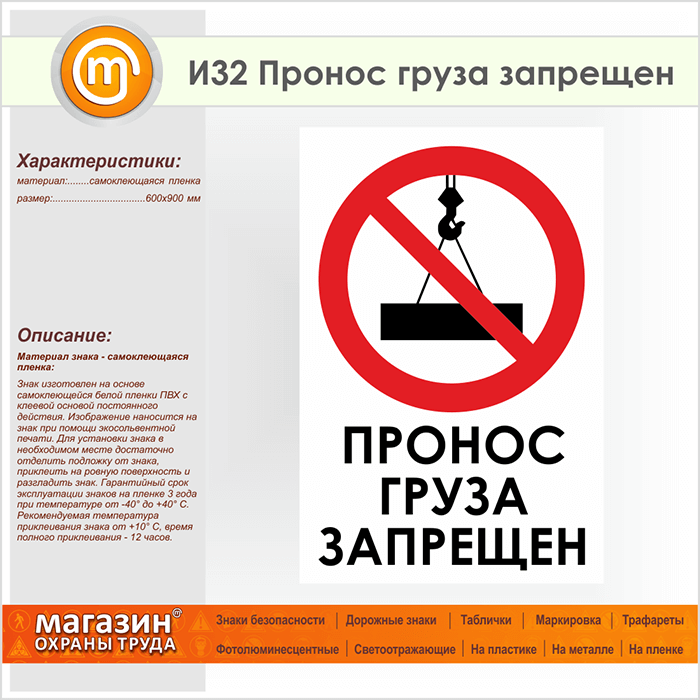 Знак «Пронос груза запрещен», И32 (пленка, 600х900 мм) в Омске купить