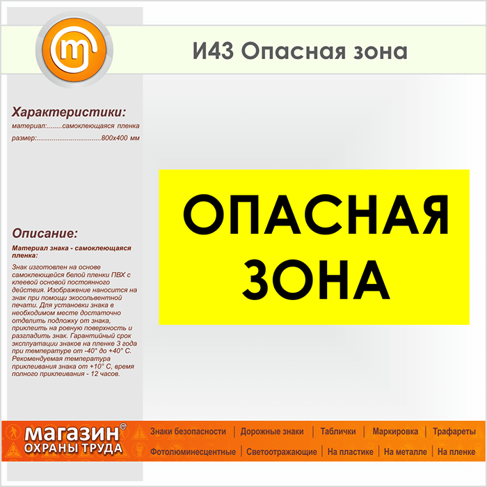 Знак «Опасная зона», И43 (пленка, 800х400 мм) в Омске купить