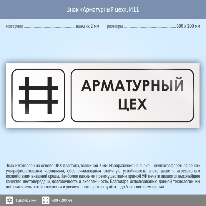 Знак «Арматурный цех», И11 (пластик, 600х200 мм) в Омске купить