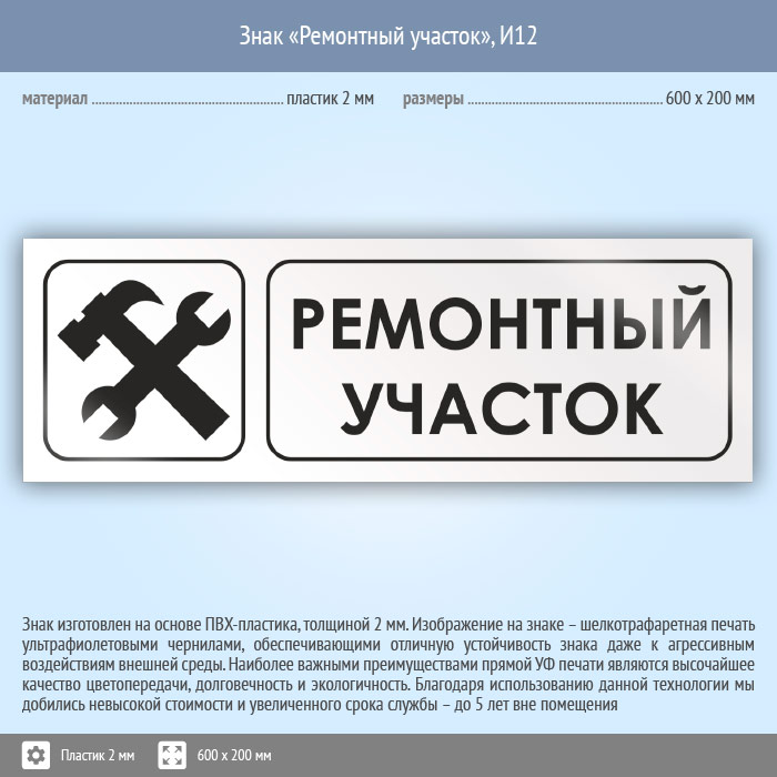 Знак «Ремонтный участок», И12 (пластик, 600х200 мм) в Омске купить