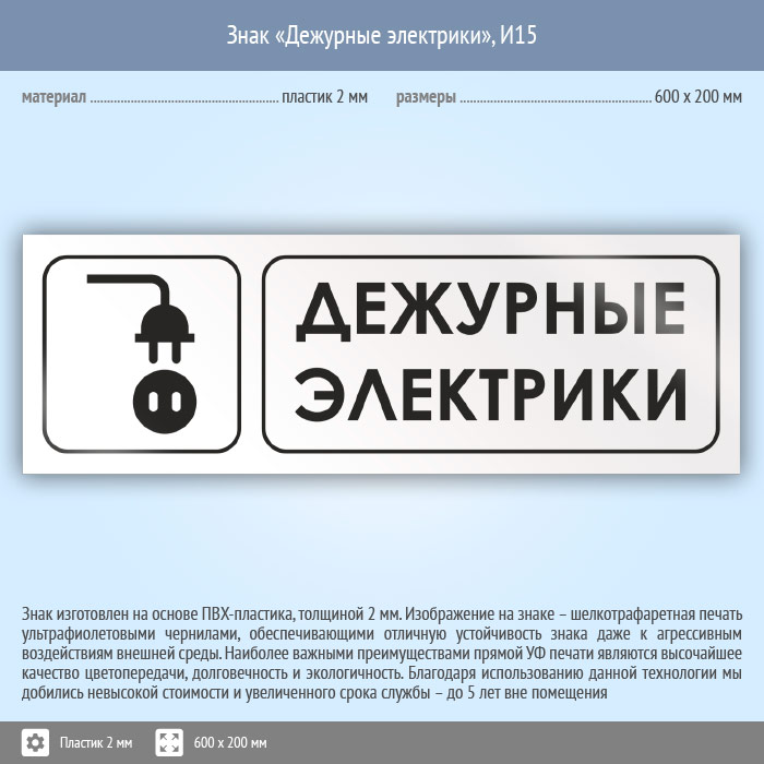 Знак «Дежурные электрики», И15 (пластик, 600х200 мм) в Омске купить