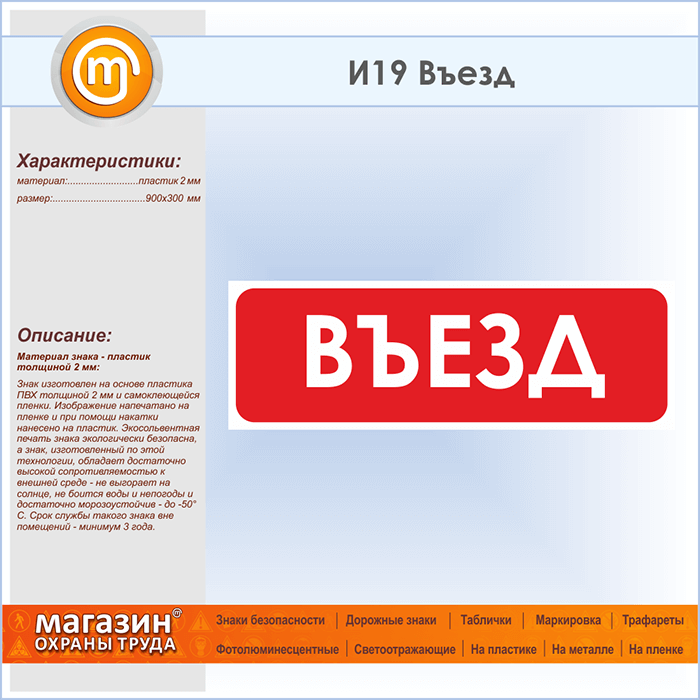 Знак «Въезд», И19 (пластик, 900х300 мм) в Омске купить