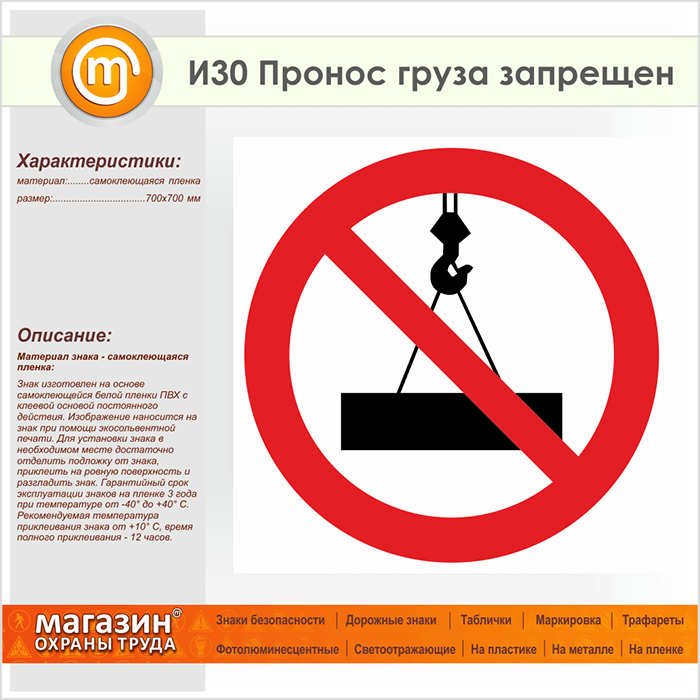 Знак «Пронос груза запрещен», И30 (пленка, 700х700 мм) в Омске купить