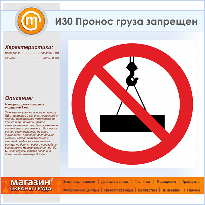 Знак «Пронос груза запрещен», И30 (пластик, 700х700 мм) в Омске купить