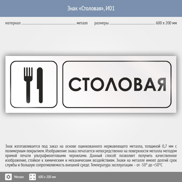 Знак «Столовая», И01 (металл, 600х200 мм) в Омске купить
