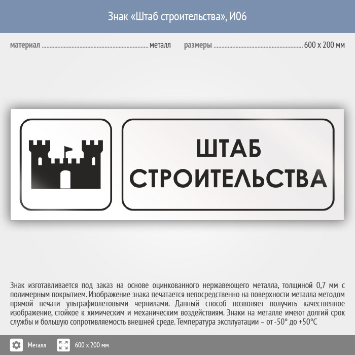 Знак «Штаб строительства», И06 (металл, 600х200 мм) в Омске купить