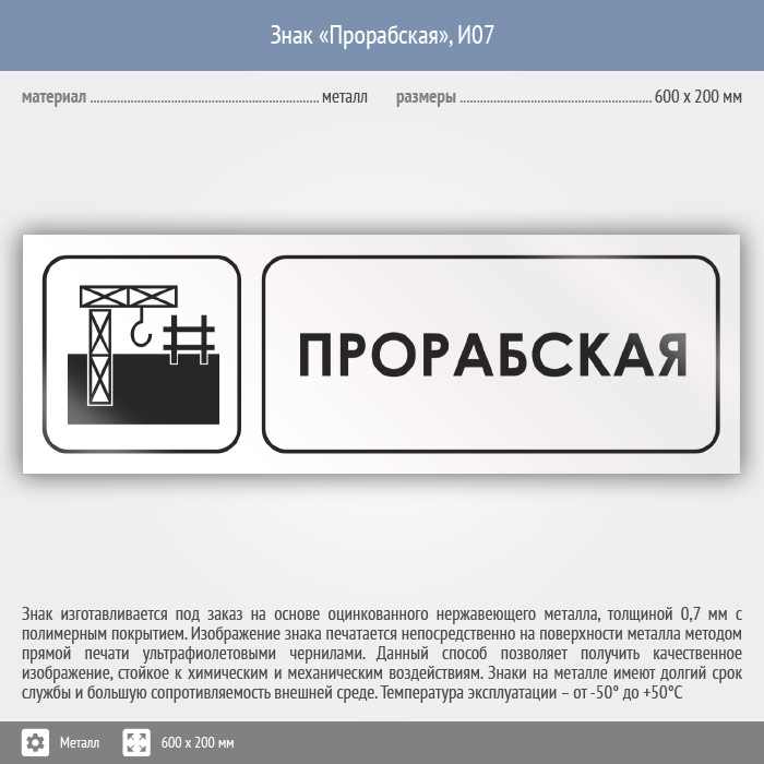 Знак «Прорабская», И07 (металл, 600х200 мм) в Омске купить