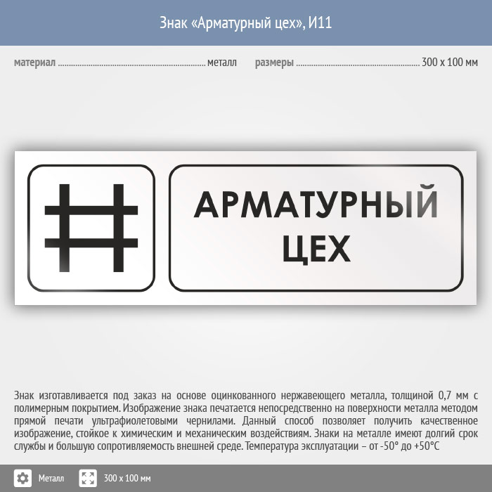 Знак «Арматурный цех», И11 (металл, 300х100 мм) в Омске купить