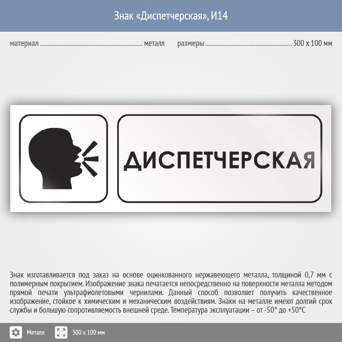 Знак «Диспетчерская», И14 (металл, 300х100 мм) в Омске купить