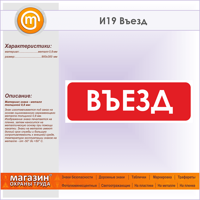 Знак «Въезд», И19 (металл, 900х300 мм) в Омске купить