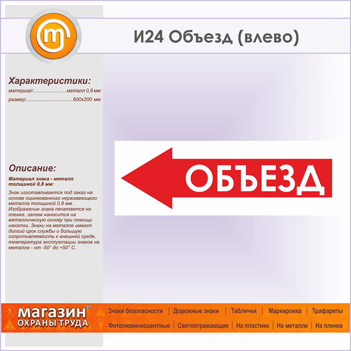 Знак «Объезд (влево)», И24 (металл, 600х200 мм) в Омске купить