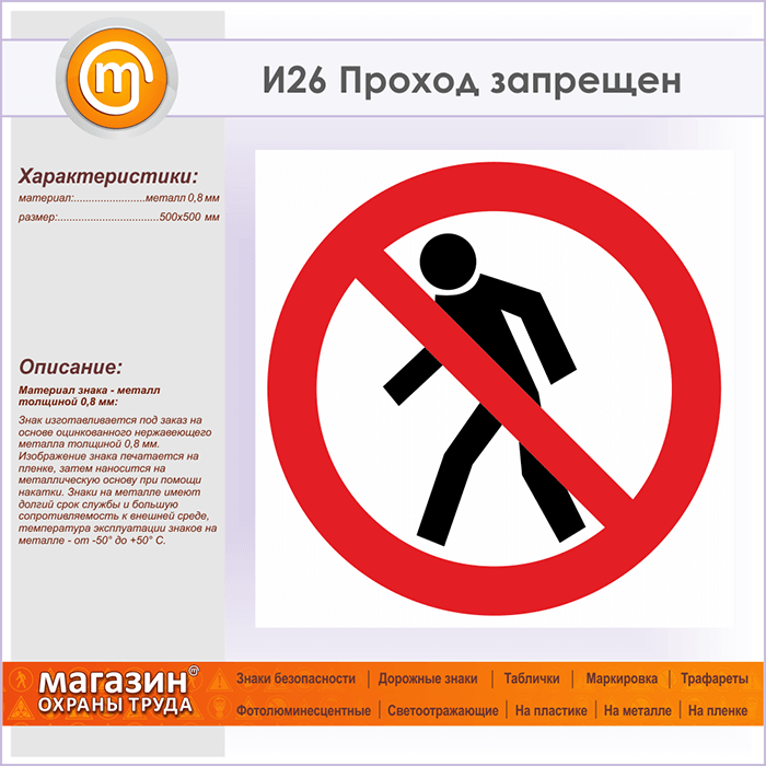 Знак «Проход запрещен», И26 (металл, 500х500 мм) в Омске купить