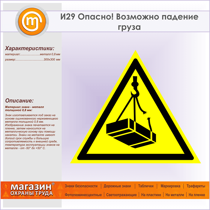 Знак «Опасно! Возможно падение груза», И29 (металл, сторона 300 мм) в Омске купить