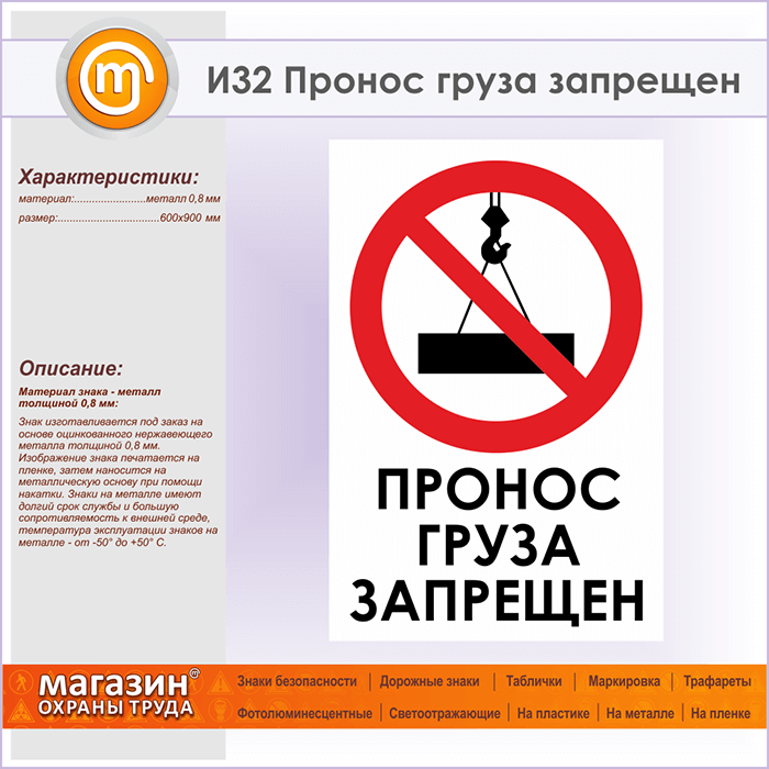 Знак «Пронос груза запрещен», И32 (металл, 600х900 мм) в Омске купить