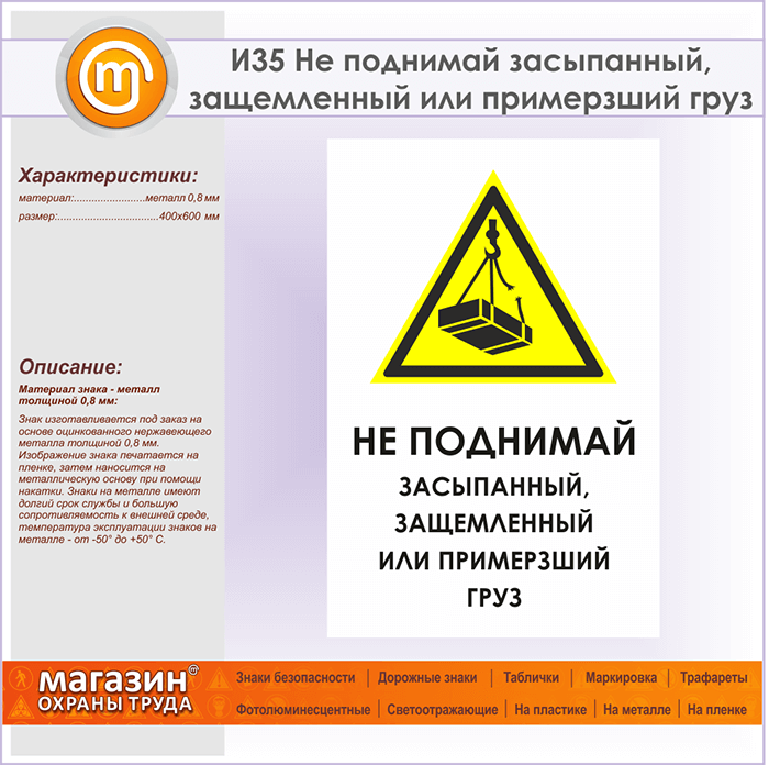 Знак «Не поднимай засыпанный, защемленный или примерзший груз», И35 (металл, 400х600 мм) в Омске купить