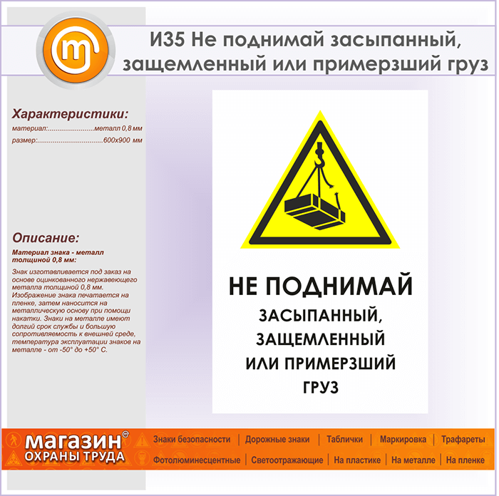 Знак «Не поднимай засыпанный, защемленный или примерзший груз», И35 (металл, 600х900 мм) в Омске купить
