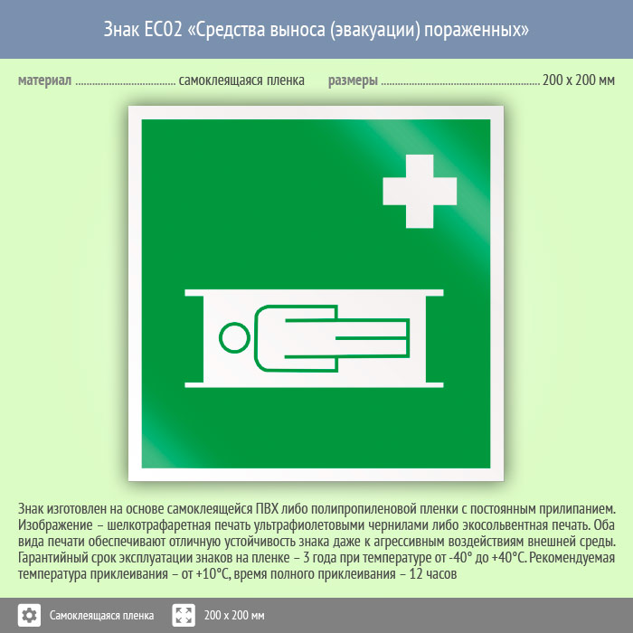 Знак EC02 «Средства выноса (эвакуации) пораженных» (пленка, 200х200 мм) в Омске купить