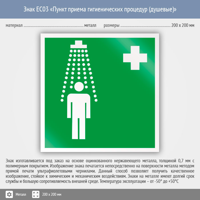 Знак EC03 «Пункт приема гигиенических процедур (душевые)» (металл, 200х200 мм) в Омске купить