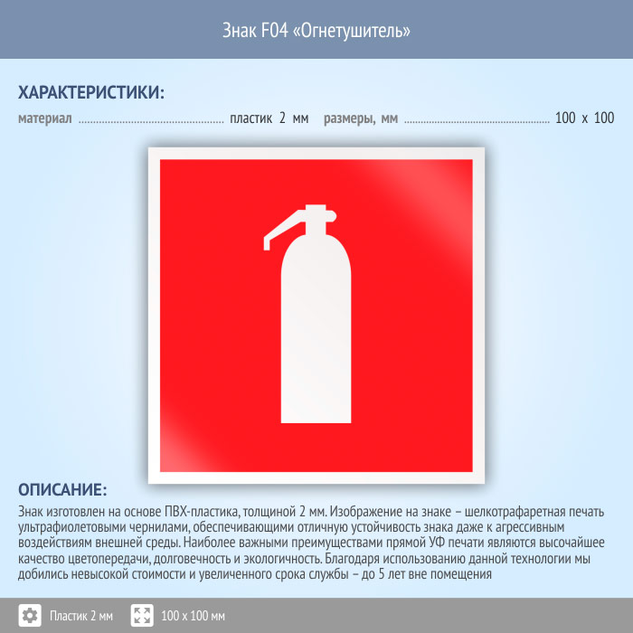 Знак F04 «Огнетушитель» (пластик, 100х100 мм) в Омске купить