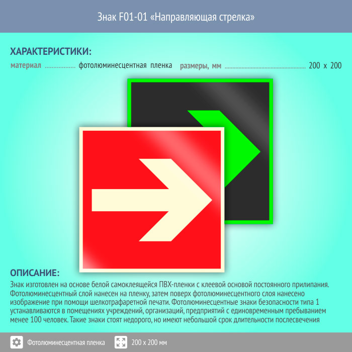 Знак F01-01 «Направляющая стрелка» (фотолюминесцентная пленка, 200х200 мм) в Омске купить