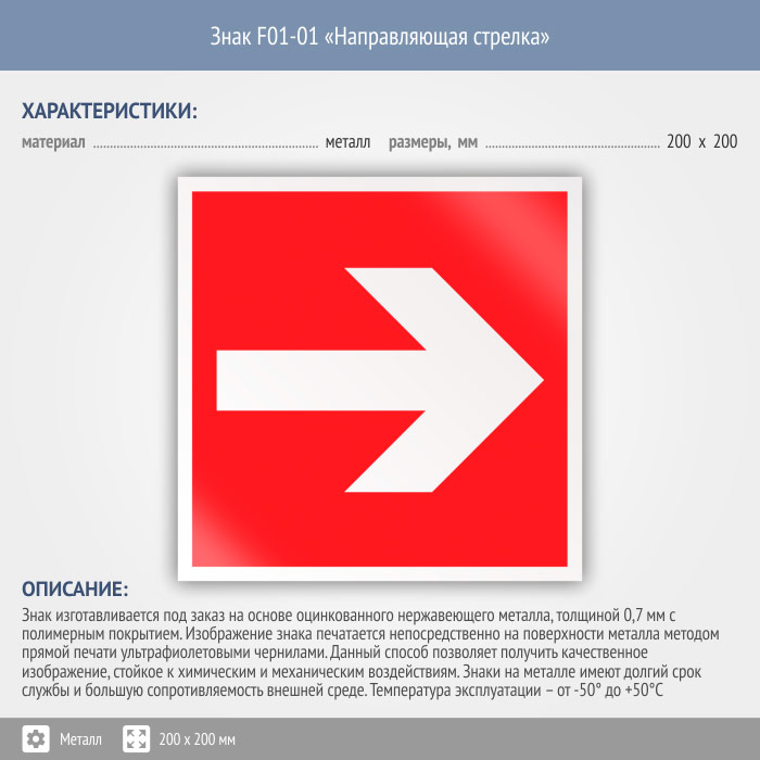 Знак F01-01 «Направляющая стрелка» (металл, 200х200 мм) в Омске купить