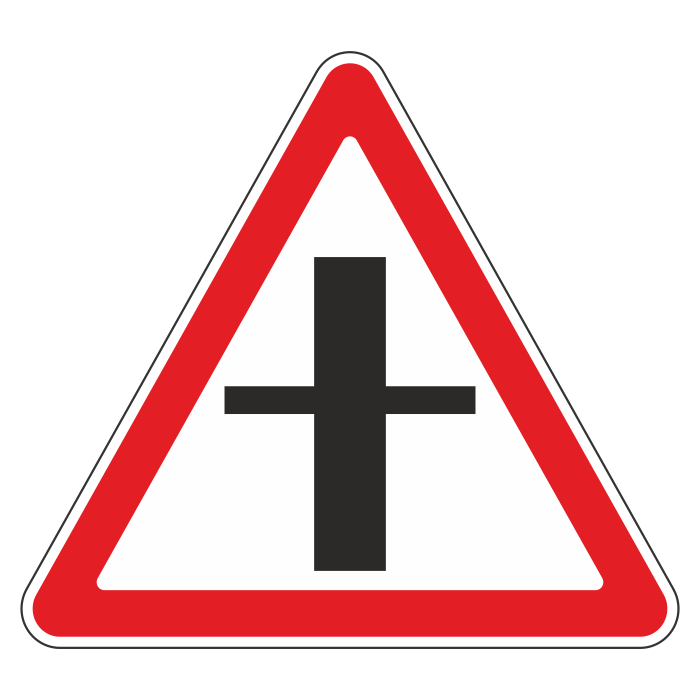 Дорожный знак 2.3.1 «Пересечение со второстепенной дорогой» (металл 0,8 мм, I типоразмер: сторона 700 мм, С/О пленка: тип А инженерная) в Омске купить